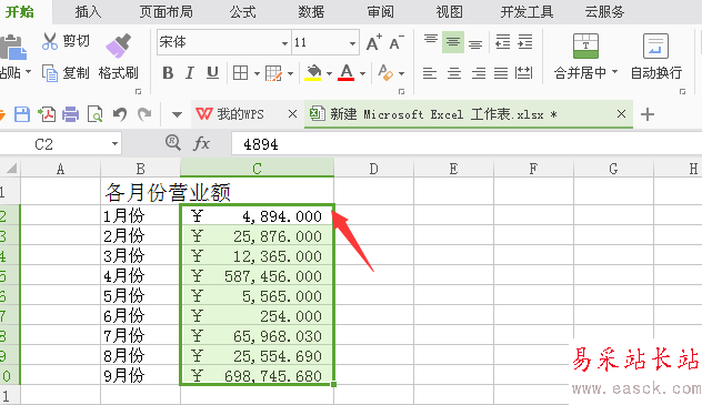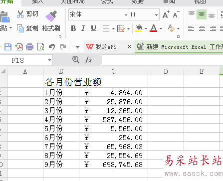 3、設置后出現(xiàn)如圖所示的結果,數(shù)據(jù)變成了會計專用的貨幣格式。