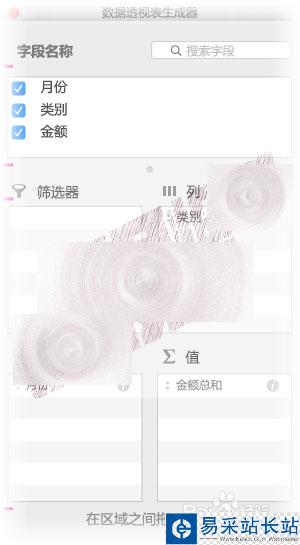 將數據透視表生成器一個區域的字段拖動到另一個區域,例如,從“列”到“行”。