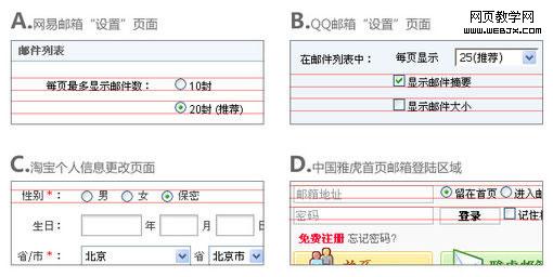 最近的項目涉及到很多表單的制作,特別是復選框(checkbox)和單選框(radio)。但是在前端開發過程中發現,單(復)選框和它們后面的提示文字在不進行任何設置的情況下,是無法對齊的,而且在firefox和ie中相差甚大。即使設置了vertical-align:middle,也依然不能完美對齊。如下圖所示: