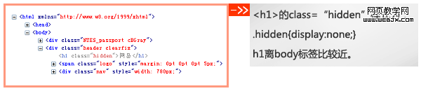 網易將h1設置了display:none樣式,使其隱藏起來,這樣既解決了h1不知道放哪里的矛盾又起到了SEO優化的作用,可謂一箭雙雕。