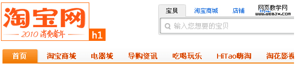 現在很多網站(包括淘寶、新浪、搜狐等知名網站),都喜歡把h1用在LOGO上, 如圖: