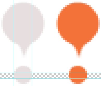 這個水滴狀圓形也比較糾結,還好,它所在的地方,背景都是白色的,所以,連同白色背景裁切,就不擔心鋸齒問題了。