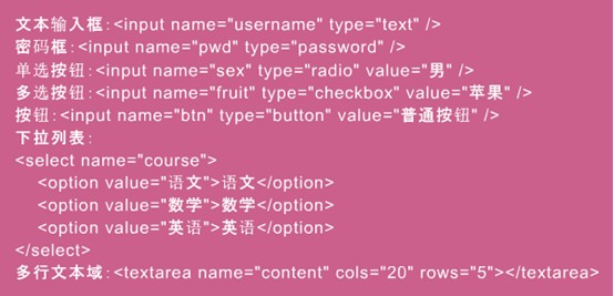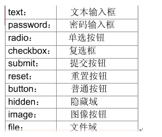 如果要把數據提交到服務器,則需要將<input>、<textarea>、<select>等表單元素放到form中。Input的類型取值如下: