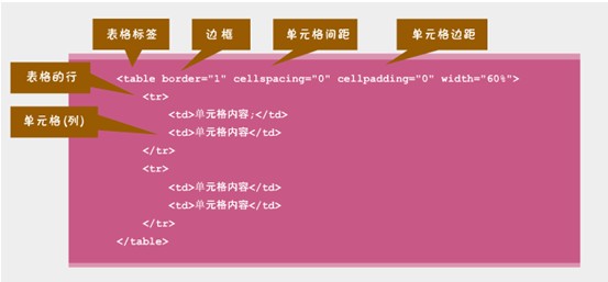 從上圖可以看出,表格由行和列組成,行用tr表示,列用td表示。還可以使用rowspan(合并行)、colspan(和并列)進行單元格的合并。