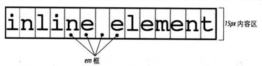 對(duì)于行內(nèi)非替換元素或匿名文本某一部分,font-size和font-family確定了內(nèi)容區(qū)的高度。在宋體情況下,如果一個(gè)行內(nèi)元素的font-size為15px,則內(nèi)容區(qū)的高度為15px;而在其他字體情況下,內(nèi)容區(qū)的高度并不等于字體大小