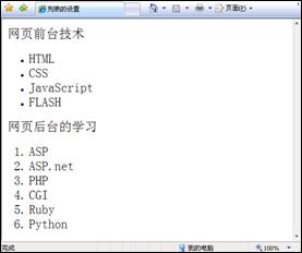 在瀏覽器地址欄輸入http://localhost/ul_ol.htm,瀏覽效果如圖4.18所示。
