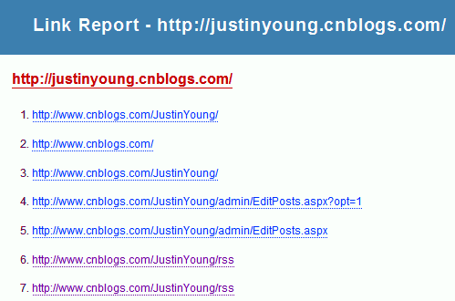 使用鏈接報告功能,開發人員工具會幫你生成一份此頁面的鏈接報表。包含鏈接數量、鏈接地址、是否新窗口打開等信息。不過,具體這玩意有什么用。我也不知道。