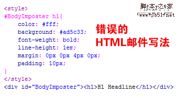 HTML的郵件也是如此,我們知道,當(dāng)今郵件閱讀客戶端有很多種,傳統(tǒng)的Outlook,Thunderbird,Lotus Notes,以及在線的Mac Mail,Gmail,Hotmail等,對郵件的解釋都會不同,大多數(shù)在線郵件系統(tǒng)會屏蔽掉<head></head>標(biāo)簽之 間的代碼。
