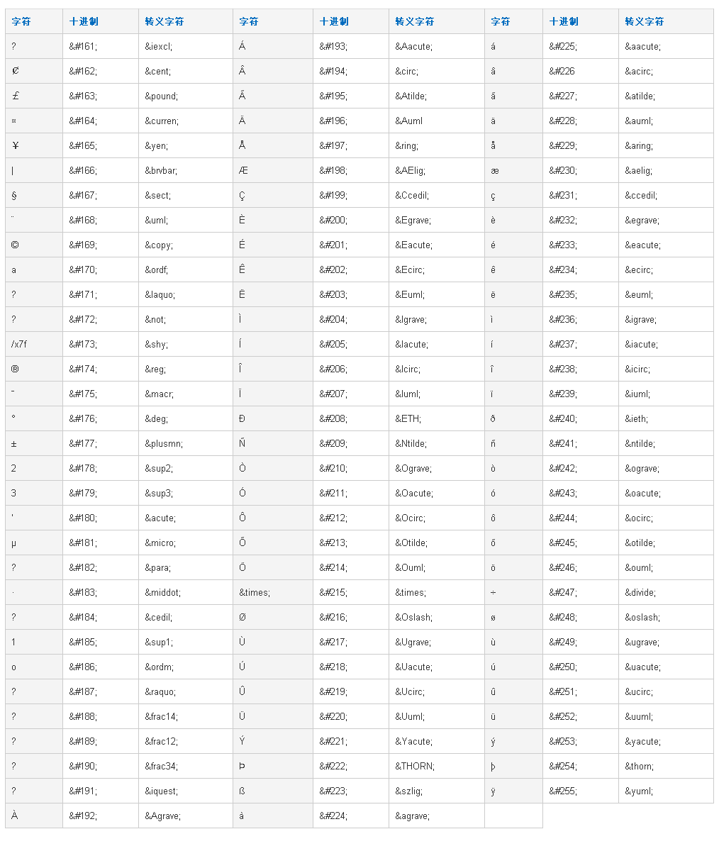 如果上面的還不能滿足你的話,建議大家可以看這篇文章:http://tools.VeVb.com/table/html_escape