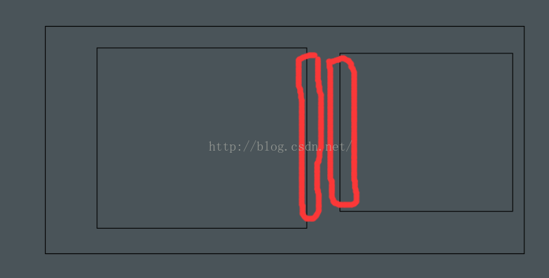 比較兩個子div的高度哪一高。選擇把高的那個div的相鄰邊框設為可見也可達到目的。