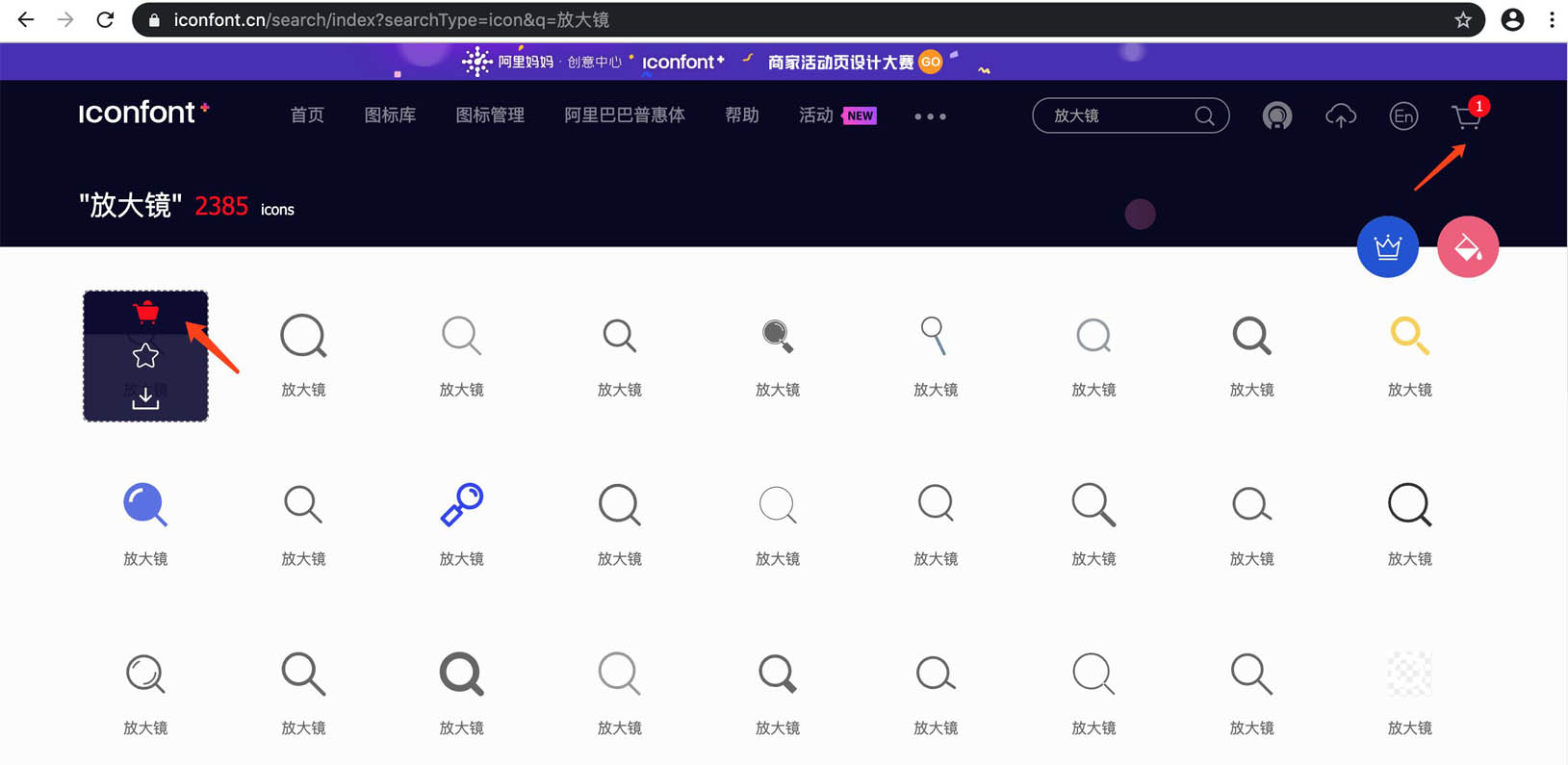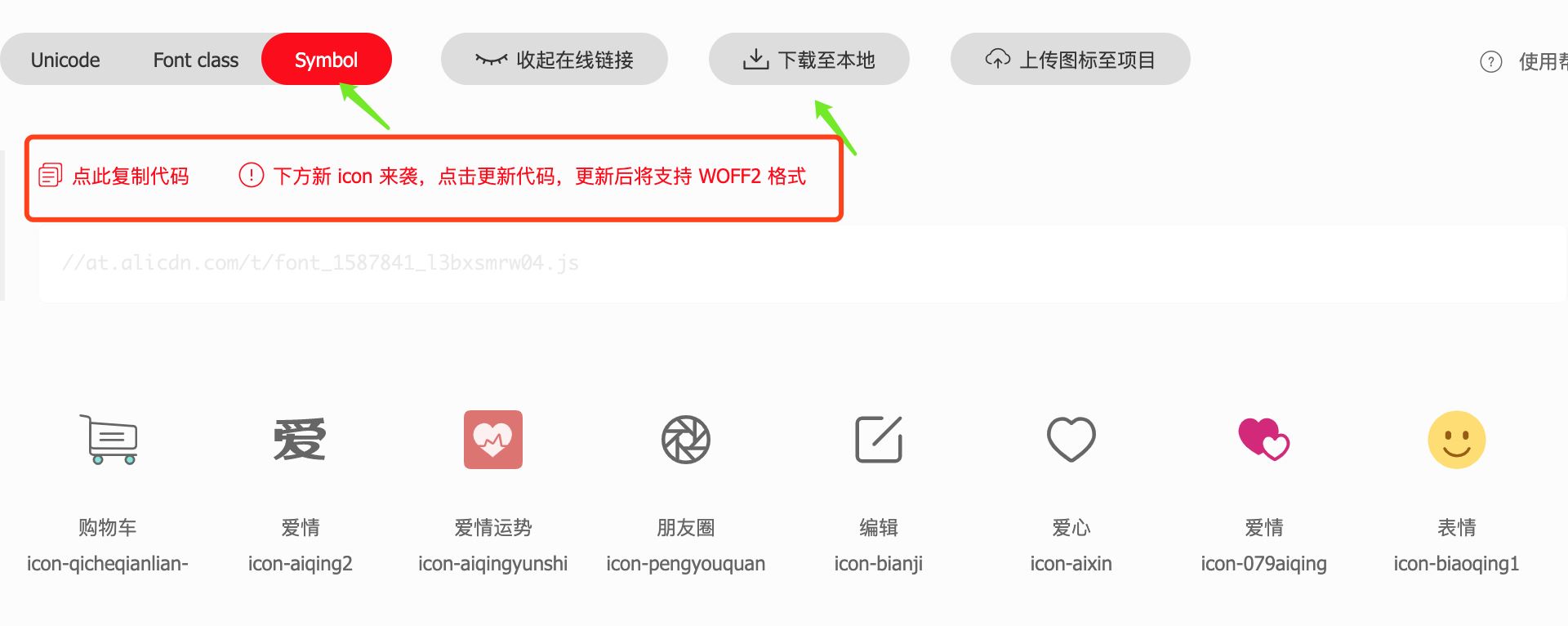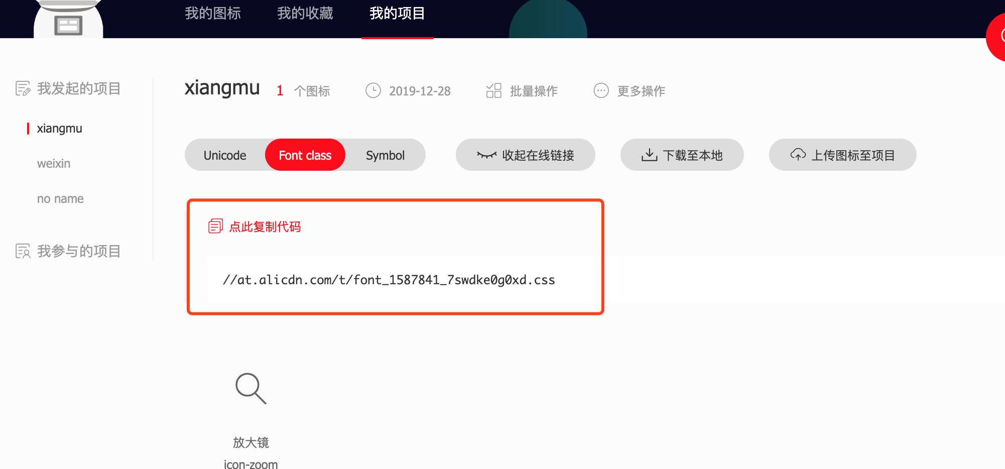 第一步:一個項目如果要用到多個圖標,也可以把要用的圖標一起選好加入到購物車,再點擊更新代碼,再更新代碼引用連接,這個方法需要下載到本地。
