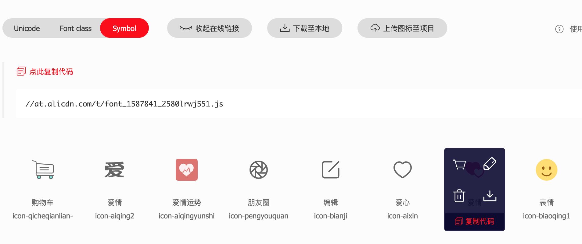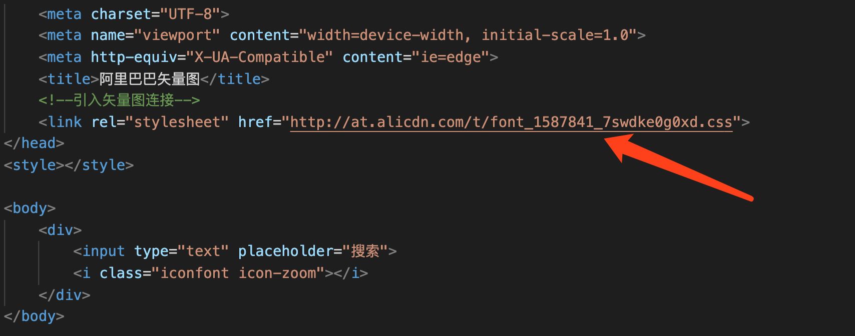 <!DOCTYPE html><html lang="en"><head> <meta charset="UTF-8"> <meta name="viewport" content="width=device-width, initial-scale=1.0"> <meta http-equiv="X-UA-Compatible" content="ie=edge"> <title>阿里巴巴矢量圖</title> <link rel="stylesheet" href="http://at.alicdn.com/t/font_1587841_2580lrwj551.js"> <script src="iconfont.js"></script></head><style> .icon { width: 1em; height: 1em; vertical-align: -0.15em; fill: currentColor; overflow: hidden; }</style><body> <input type="text" placeholder="搜索"> <svg class="icon" aria-hidden="true"> <use xlink:href="#icon-079aiqing"></use> </svg></body></html>