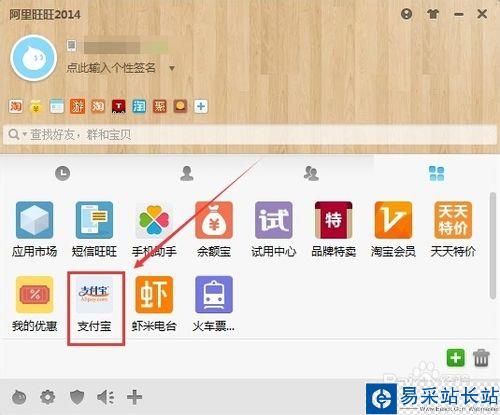 4、在阿里旺旺應用選項卡里找到支付寶,點擊支付寶,如下圖所示。