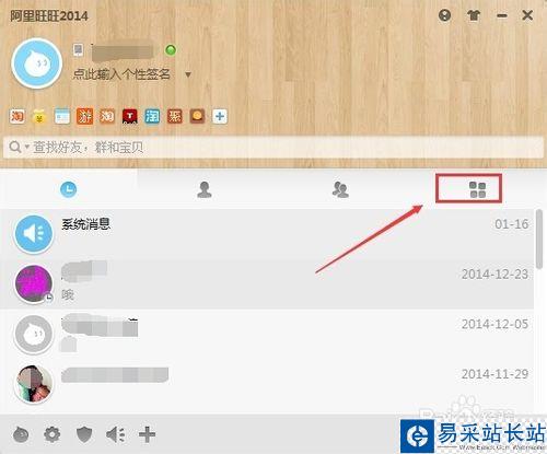 3、登錄成功后,在阿里旺旺主界面上點擊導航右側的應用圖標,如下圖所示。
