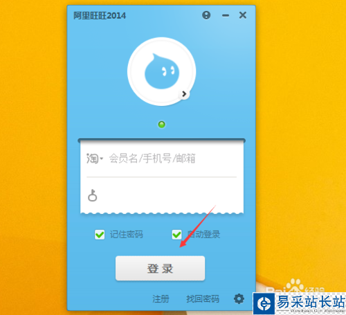 2、在阿里旺旺登錄界面上,輸入淘寶帳號和密碼,然后點擊登錄,如下圖所示。