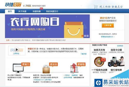 5、點(diǎn)擊“網(wǎng)上購物、快捷支付”超鏈接,進(jìn)入快捷支付頁面。在此頁面可以看到各大銀行的優(yōu)惠信息。