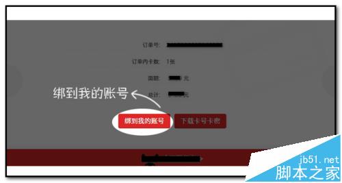 1)手機端操作:登錄“我的淘寶”,打開“我的訂單”進入頁面,找到此卡的交易訂單,點擊“卡號卡密”;再點擊“綁定我的賬號”;