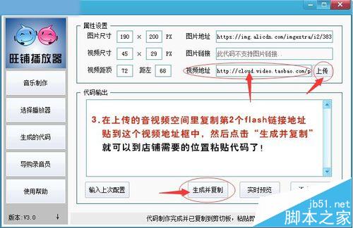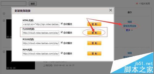3、在上傳好的空間里復制第2個或者第4個MP4鏈接地址貼進視頻地址框中,然后點擊“生成并復制”。(視頻地址獲取方式見第二圖)