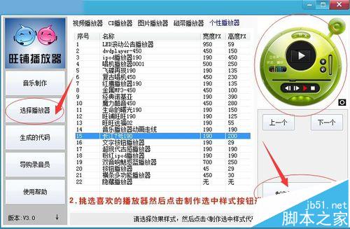 2、選擇播放器,慢慢挑選您所喜歡的并適合您店鋪的播放器款式后點擊“制作選中樣式代碼”進行設置。