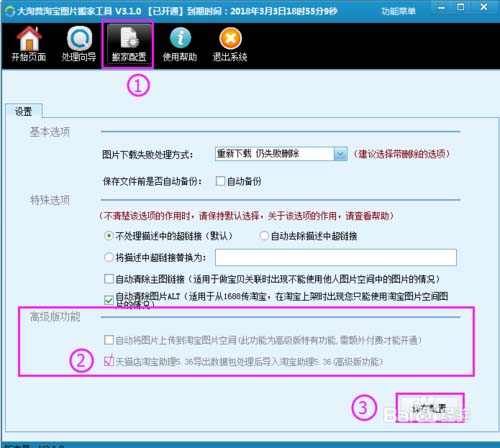 3、其實很少有賣家會發現搬家工具搬家配置的一個小功能(圖②),把這個功能勾上再保存配置(圖③)就能解決不能使用他人空間中圖片這個問題了,記得一定要保存配置哦!