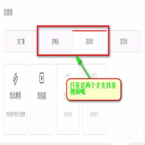 4、進(jìn)入后發(fā)微淘界面后仔細(xì)看”發(fā)微淘的界面“它分為:發(fā)廣播;發(fā)商品;發(fā)活動(dòng);發(fā)互動(dòng)。在這里呢可以發(fā)視頻的只有發(fā)商品和發(fā)活動(dòng)才能發(fā)視頻哦!發(fā)廣播是只能發(fā)圖片!