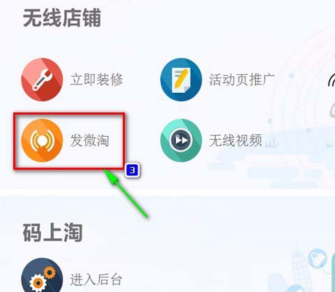 3、進(jìn)入”手機(jī)淘寶店鋪“后點(diǎn)擊”發(fā)微淘“