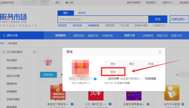 3、如果針對不需要的軟件,由于在新版本的后臺沒有退訂按鈕。取消應用服務只能通過投訴服務來實現。