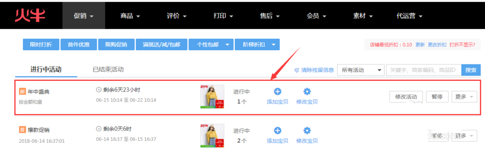 9、活動創建完成后,可以跳轉到【活動列表】查看活動情況,如果需要修改活動,也可以在活動列表中對活動進行修改。