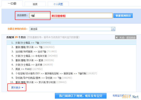 如果之前已經發(fā)布過相同類目的商品,再次發(fā)布的時候,可直接點擊“您最近使用的類目“選擇相應的類目即可。在這里會展示最近發(fā)布過的10個類目哦。