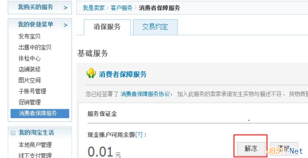 首先大家要知道解凍消費者保證金的入口:“賣家中心”—“客戶服務”—“消費者保障服務”—“消保服務”-“解凍”,操作很簡單,大家直接點擊解凍就好,媽媽再也不用擔心你的解凍問題!