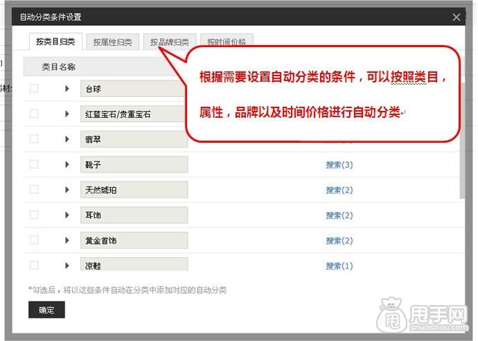 1、首先登陸進店鋪的賣家后臺,點擊最上方的橫向導航中的“商品”——“分類管理”——“添加自動分類”進入自動分類的頁面。