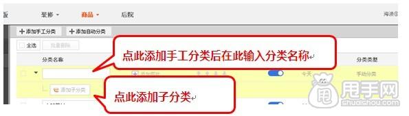 2、點擊添加手工分類添加分類和子分類,如下圖: