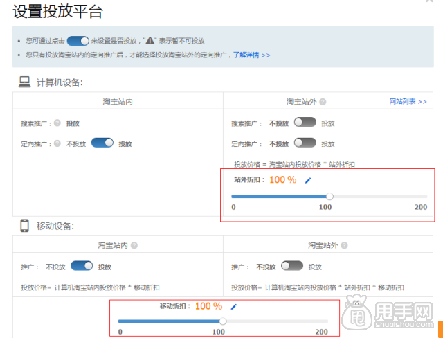 而其它更多詞的調價,若是每個價格都根據流量預估能力來出價的話就太浪費精力了,所以,要高效利用直通車后臺現有的三大出價折扣工具,分別是“分時折扣”、“移動端折扣”以及“站外折扣”。