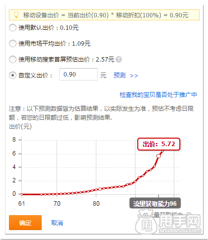 在任何時刻,關鍵詞的當前真實出價=出價*分時折扣*(移動端折扣或者站外折扣),舉個例子,在無線直通車里,關鍵詞的設置出價為2.0元,當前時刻的計劃分時折扣為60%,移動端折扣為150%,那么最終參與競價的價格則是2.0*60%*150%=1.8元。