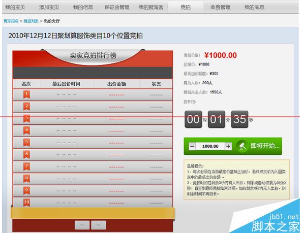 d、競拍開始之后,要在設置你的競價金額之后點擊出價競拍,排行榜中會有狀態提示“入圍”和“出局”