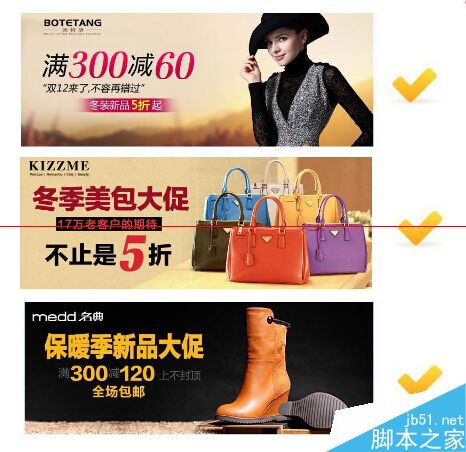 c、品牌logo放左上角,促銷力度以及主題文案放左邊,占全圖比例60%,商品圖/模特圖放右邊,占全圖比例40%;