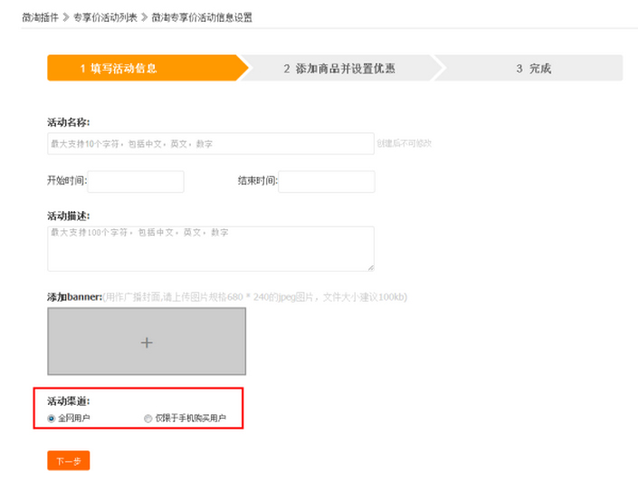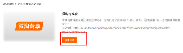 例子二:以下為微淘專享價的界面,通過創(chuàng)建活動進行設置。