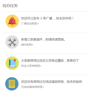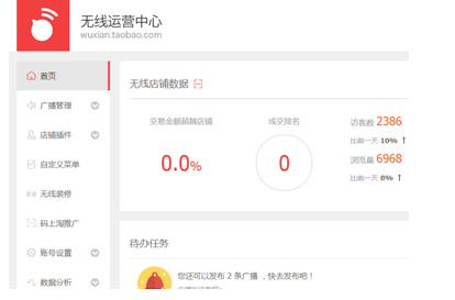 以下是新版無線運營中心的界面,首頁由“無線店鋪以及待辦任務“構成。