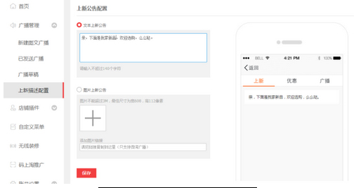 文本公告盡量用比較有吸引力的文案,例如:親,新品隨時更新,假日特價促銷,有買有送哦!