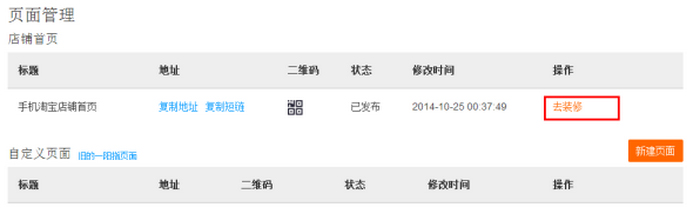 進入后有一個頁面管理,賣家可以直接在此進行店鋪裝修。