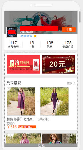 提醒:手機店鋪裝修最多模板為12個。設置完成后的界面如下: