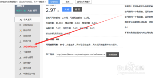 2、接下來你需要百度51短信驗(yàn)證碼平臺(tái),進(jìn)入到下面的那個(gè)頁面(有圖)注冊(cè)好賬號(hào),然后進(jìn)入平臺(tái)頁面(有圖)注意看我的紅色箭頭!