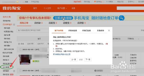 3、出現(xiàn)所有交易過信息的頁面,看到提示所有訂單,待發(fā)貨,待評(píng)價(jià),待收貨,待付款的綜合信息