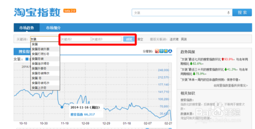 5、選擇你想查看的關鍵詞點擊對比可以看到流量對比