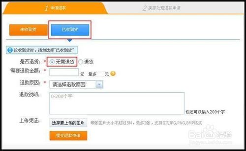 3、已收到貨,需要退貨退款的退款申請操作流程