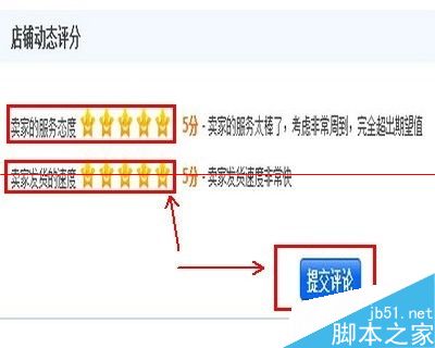 五、再給賣家的服務態度和賣家發貨的速度進行評價,然后點“提交評價”即可。