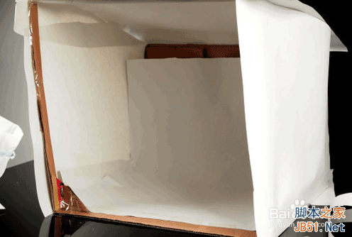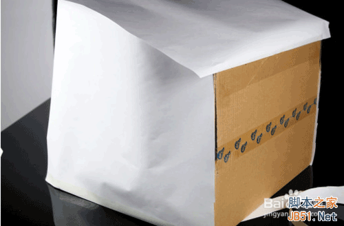 9、粘好兩個側面之后,頂面用一張白紙蓋好即可,這樣,攝影棚就制作完成了。最后,在攝影棚里面鋪上白紙,就可以拍攝了。筆者花費10分鐘制作的這個攝影棚,看上去非常粗糙,那它的實際效果如何呢,我們來測試一下。