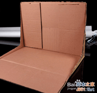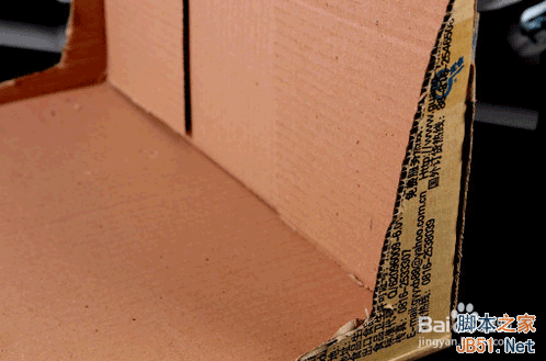 1、將紙箱的一側放倒在地,用剪刀剪掉紙箱的三面,只留下相互垂直的兩面。