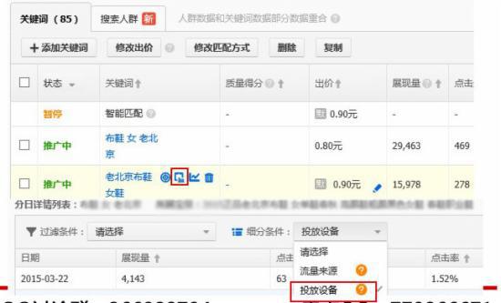 打開推廣中寶貝——關鍵詞——按下一圖點擊——選擇投放設備
