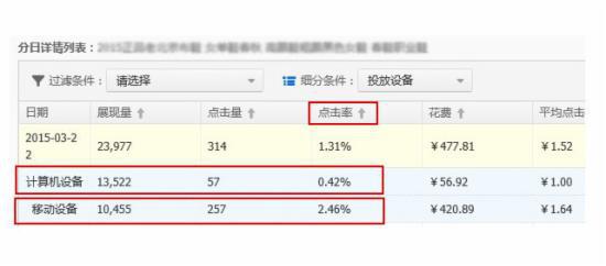 查詢直通車寶貝的每個關鍵詞的無線和PC點擊率